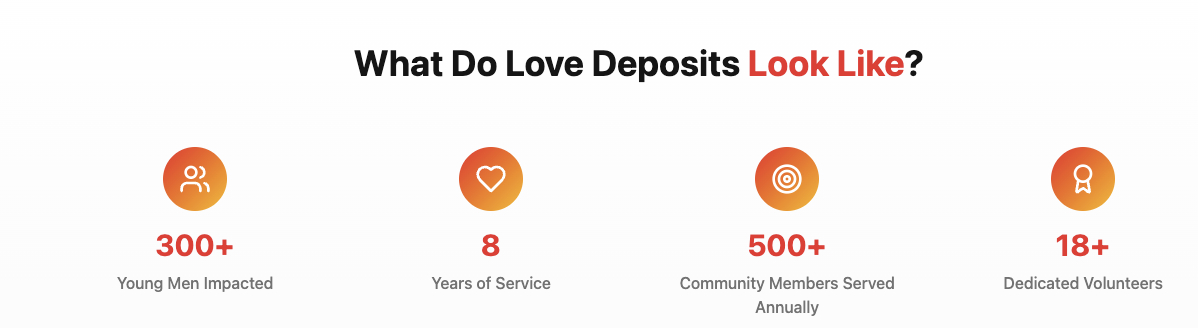 We're making it reality one Love Deposit at a time. Through mentorship, education, and unwavering support, we're helping young men in North Dallas, Southwest Dallas, and throughout the Dallas-Fort Worth Metroplex understand just how much they matter.